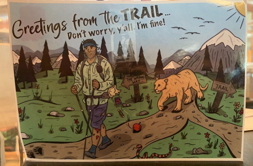 When we got to Mt. Laguna, we found a funny post card that made fun of the all the trail hazards … although I noticed that the wind isn’t mentioned!